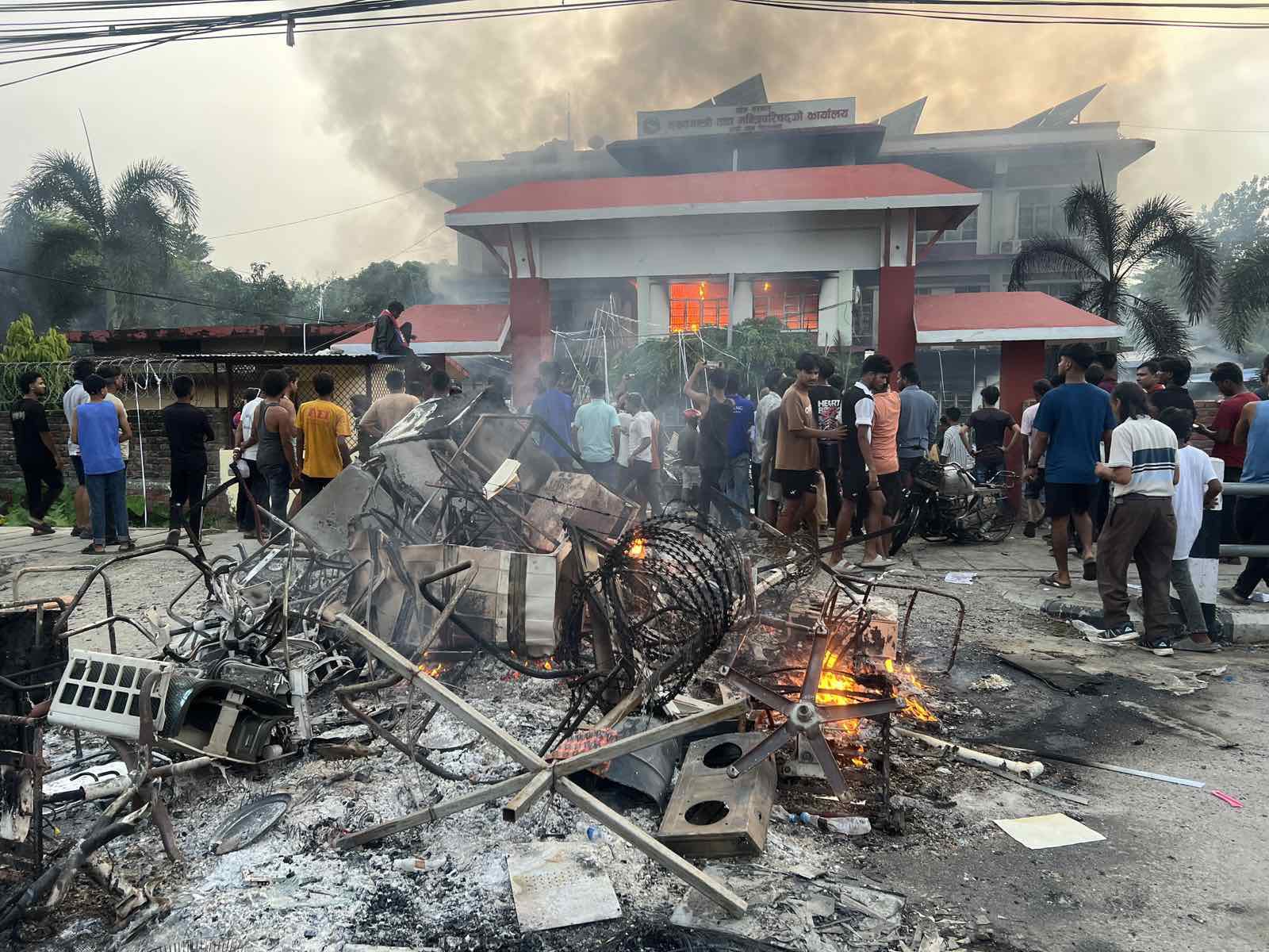 विराटनगर। मंगलबारको जेन-जी पुस्ताको आन्दोलनमा विराटनगरका अधिकांश केन्द्रीय सरकार मातहतको कार्यालय र प्रदेशका प्रमुख कार्यालयहरू जलेर ध्वस्त भएका छन्। हिजो जेन-जी प्रदर्शनकारीहरूले सुरक्षा घेरा तोड्दै विराटनगरका सरकारी कार्यालयहरूमा आगो लगाउँदा अधिकांश कार्यालय ध्वस्त भएका हुन्।