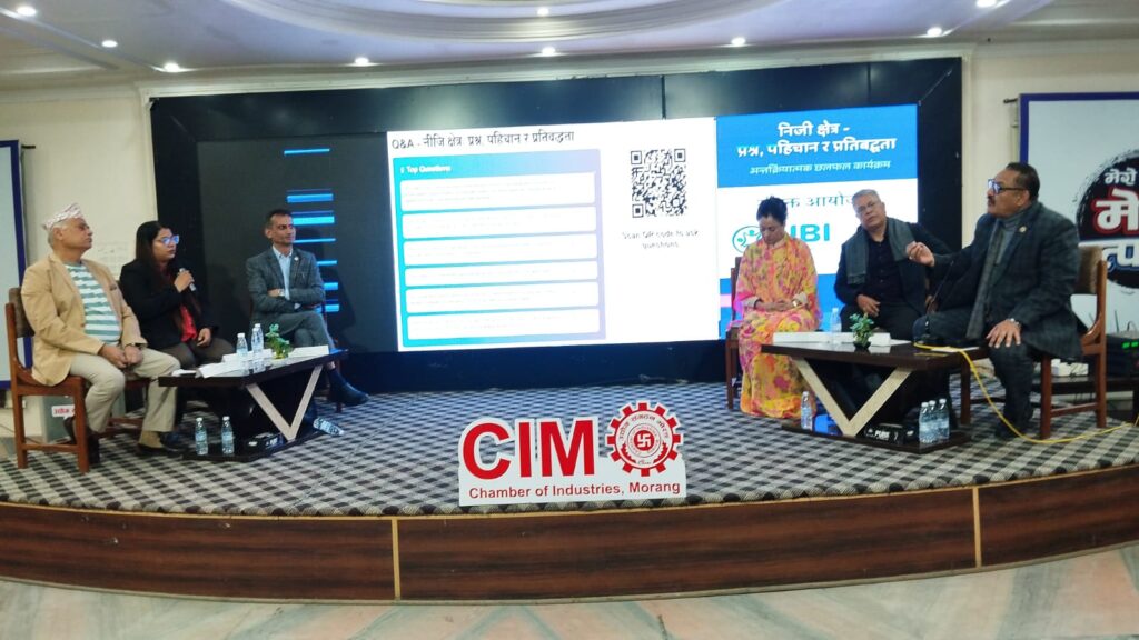 अन्तरक्रियामा कोशी प्रदेश योजना आयोगका पूर्व उपाध्यक्ष सुबोध प्याकुरेलले नेपालमा कर्मचारीतन्त्रले निजी क्षेत्रलाई त्रस्त बनाएकोले राज्यले कर्मचारीतन्त्रलाई बलियो बनाएर निजी क्षेत्रलाई कमजोर बनाउने नीति त्याग्नु पर्ने धारणा राख्नु भएको थियो भने युवा उद्यमी सिद्धि अधिकारीले निजी क्षेत्र दयनीय अवस्थामा रहेको भन्दै राज्यले उपयुक्त नीति निर्माण गरेर व्यापार-व्यवसाय गर्न सहजीकरण गर्नु पर्ने बताउनु भएको थियो।